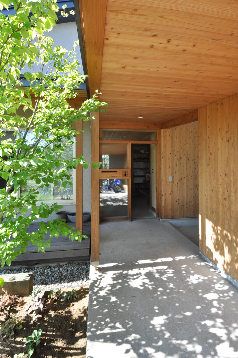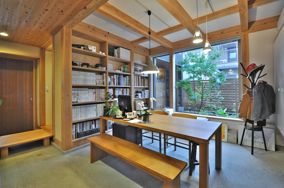 『木々の中に佇む気持ちの良い住まい』という事務所のコンセプトを第一に、事務所兼自邸の設計をしました。市内の中でもハナミズキとカエデ並木が交差している街路樹の緑の景色の良い通りに面しています。
