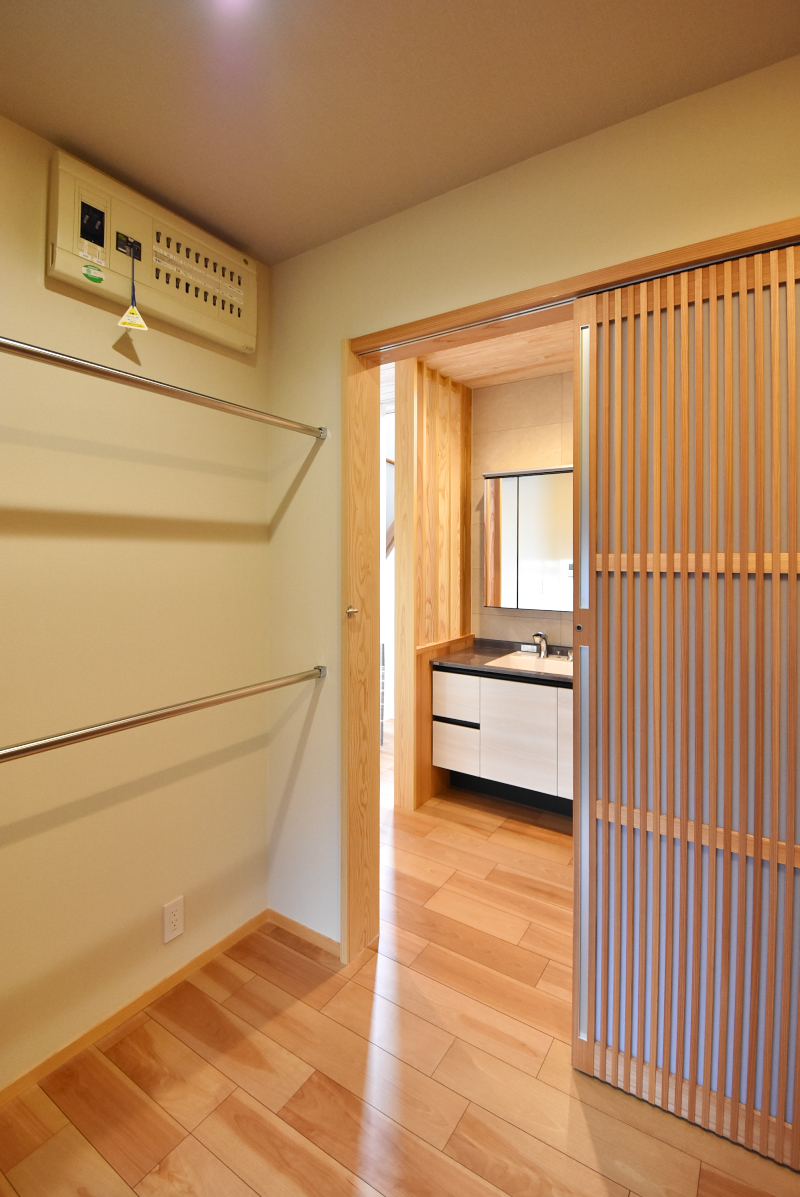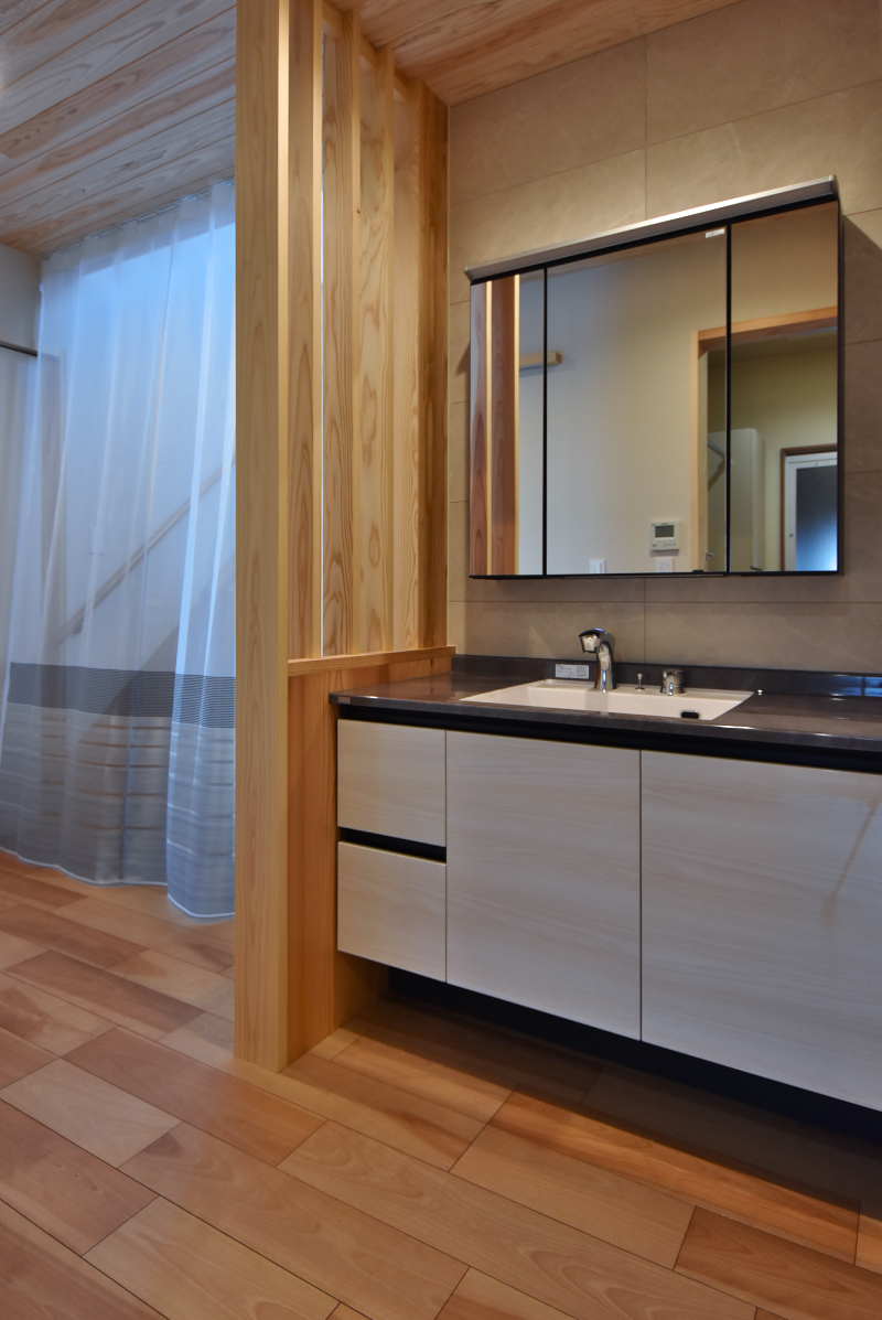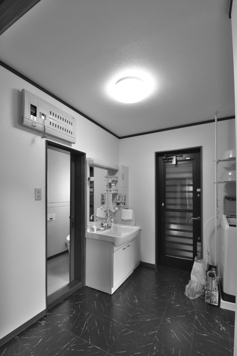 洗面・トイレ・脱衣室の配置を工夫し、アプローチの仕方を変えるだけで、大きくは間取りを変えずとも飛躍的に使いやすくなりました。間取りをさわり過ぎない=余分な解体や手間の費用を抑える事に繋がります。また昔ならではの収納の少なさも解消するよう工夫しています。