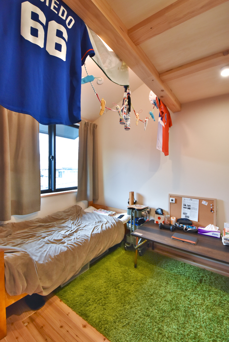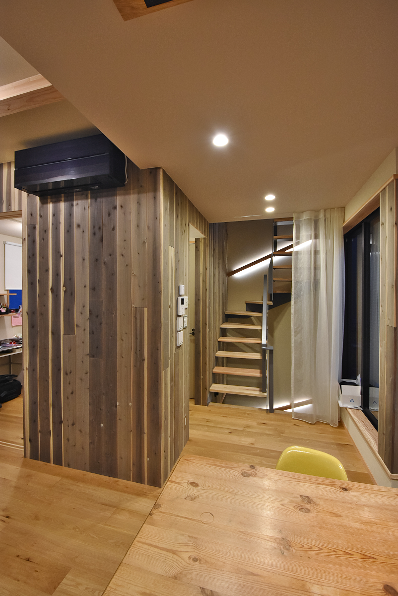 道路斜線めい一杯利用して確保したロフトはエアコン空調室になっており、1台のエアコンで3階3部屋が全て賄われています。